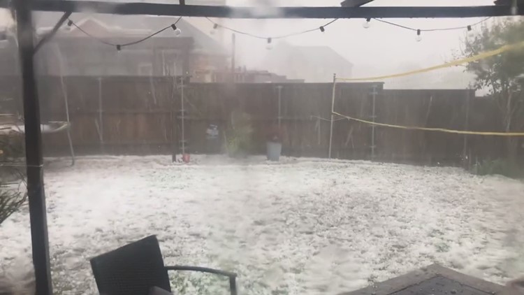 Quarter-sized hail has been reported in the North Texas area, with golf ball-sized hail possible as the night goes on while several parts of the area are under a severe thunderstorm warning.