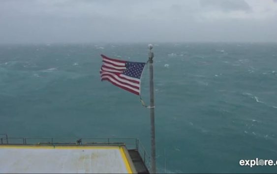 The Frying Pan Ocean Cam, from EXPLORE, has been showing a wild scene as the American flag atop the Frying Pan Tower gets whipped all around by Hurricane Dorian.