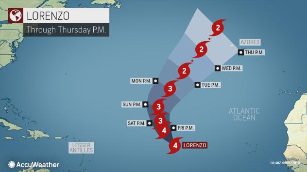 “Lorenzo may eventually be a threat to the Azores later next week,” AccuWeather Senior Meteorologist Alex Sosnowski said. “The Azores are a group of islands in the east-central Atlantic Ocean.”