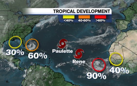 Next up is Tropical Storm Paulette with maximum sustained winds of 65 miles per hour.