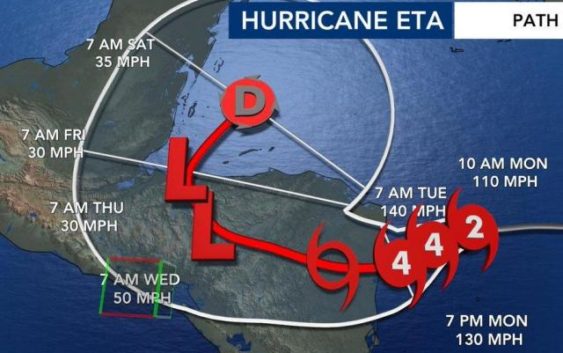 Eta is the eighth Atlantic storm this season to hit the meteorologists’ definition for rapid intensification — a gain of 35 mph (56 kph) in wind speed in just 24 hours. It’s also the fifth to reach major hurricane status.