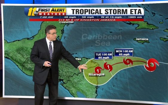 Tropical Storm Eta strengthens; 2020 ties the record with 2005 for most named storms in a season