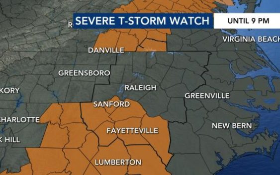 Severe thunderstorm watches were issued for many of our more southern counties, including Sampson, Moore, Lee and Harnett until 9 p.m.
