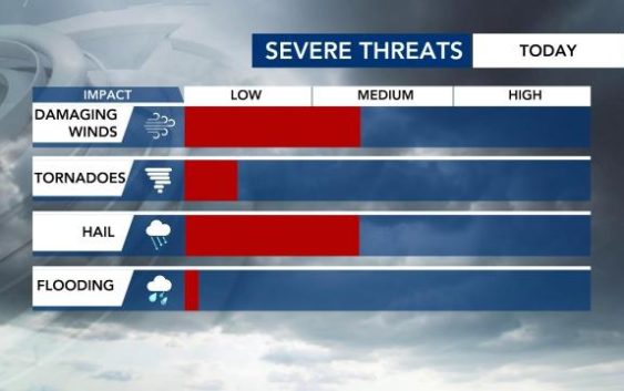The severe threat moved out of the are around 8:30 p.m. but left patches of rain behind.