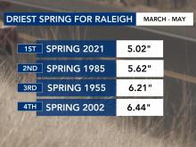 We’ll get three straight days of solid rain chances, a good sign considering we just completed the driest spring on record at RDU with just over five inches of rain in a three-month span.