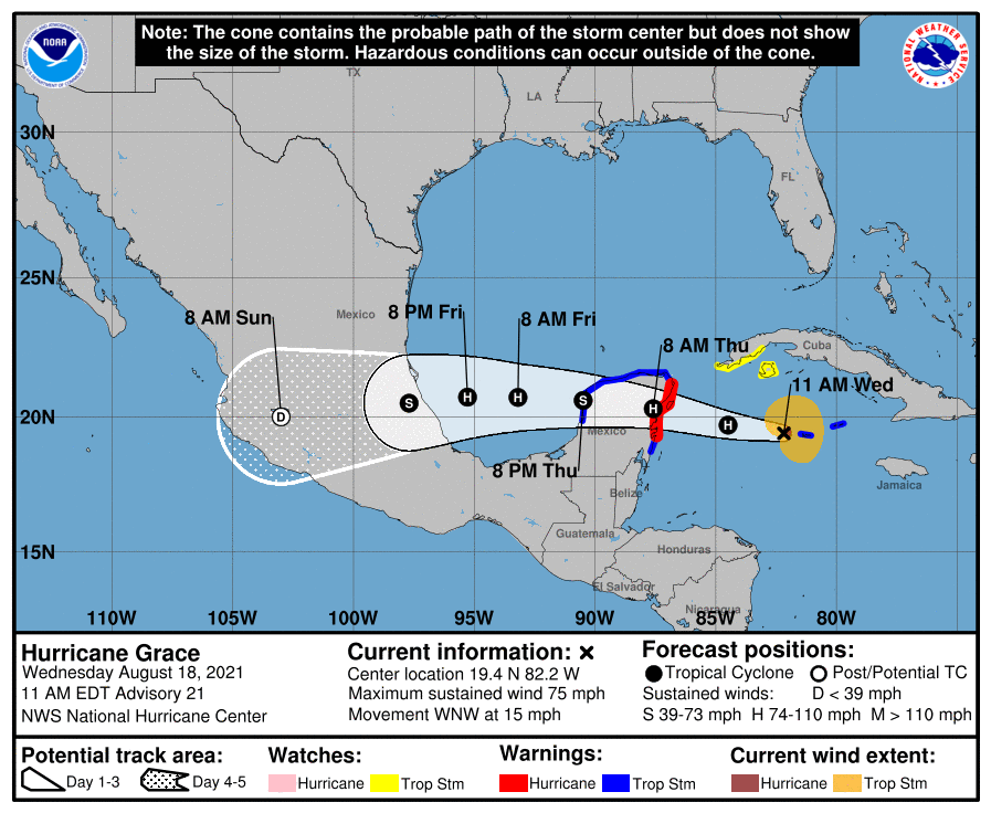 Here is the latest data on Tropical Storm Grace pulled from the National Hurricane Center’s 4 a.m. advisory.